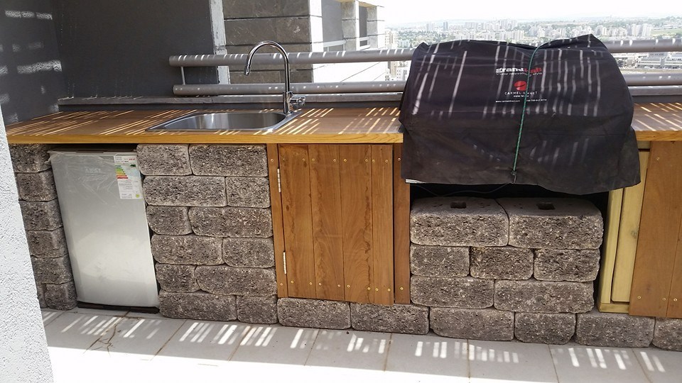 כיור, אינסטלציה וחשמל: כחלק מתכנון נכון של הגינה יש לחשוב מראש על משטח העבודה בסמוך לגריל, סמוך למקור מים.